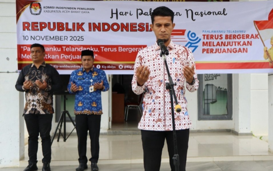 Blangpidie-Kip-acehbaratdaya.kpu.go.id. KIP Kabupaten Aceh Barat Daya melaksanakan upacara Memperingati hari Pahlawan 10 November 2025, dihalaman kantor setempat. Senin, 10/11/2025