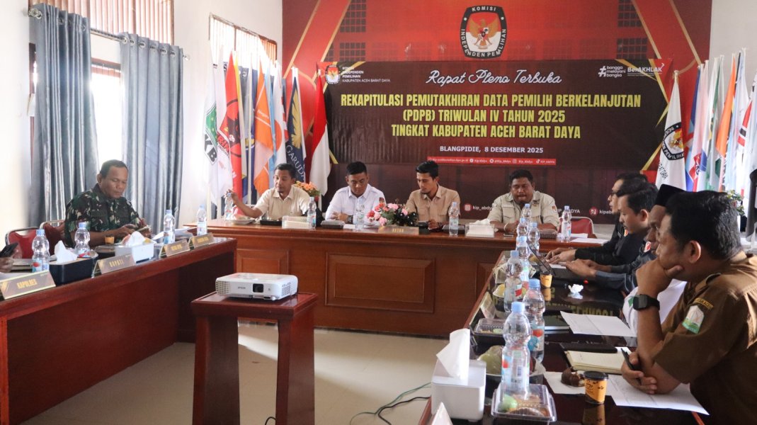 Rapat Pleno terbuka rekapitulasi pemutakhiran data pemilih berkelanjutan (PDPB) triwulan IV tahun 2025 tingkat Kabupaten Aceh Barat Daya.
