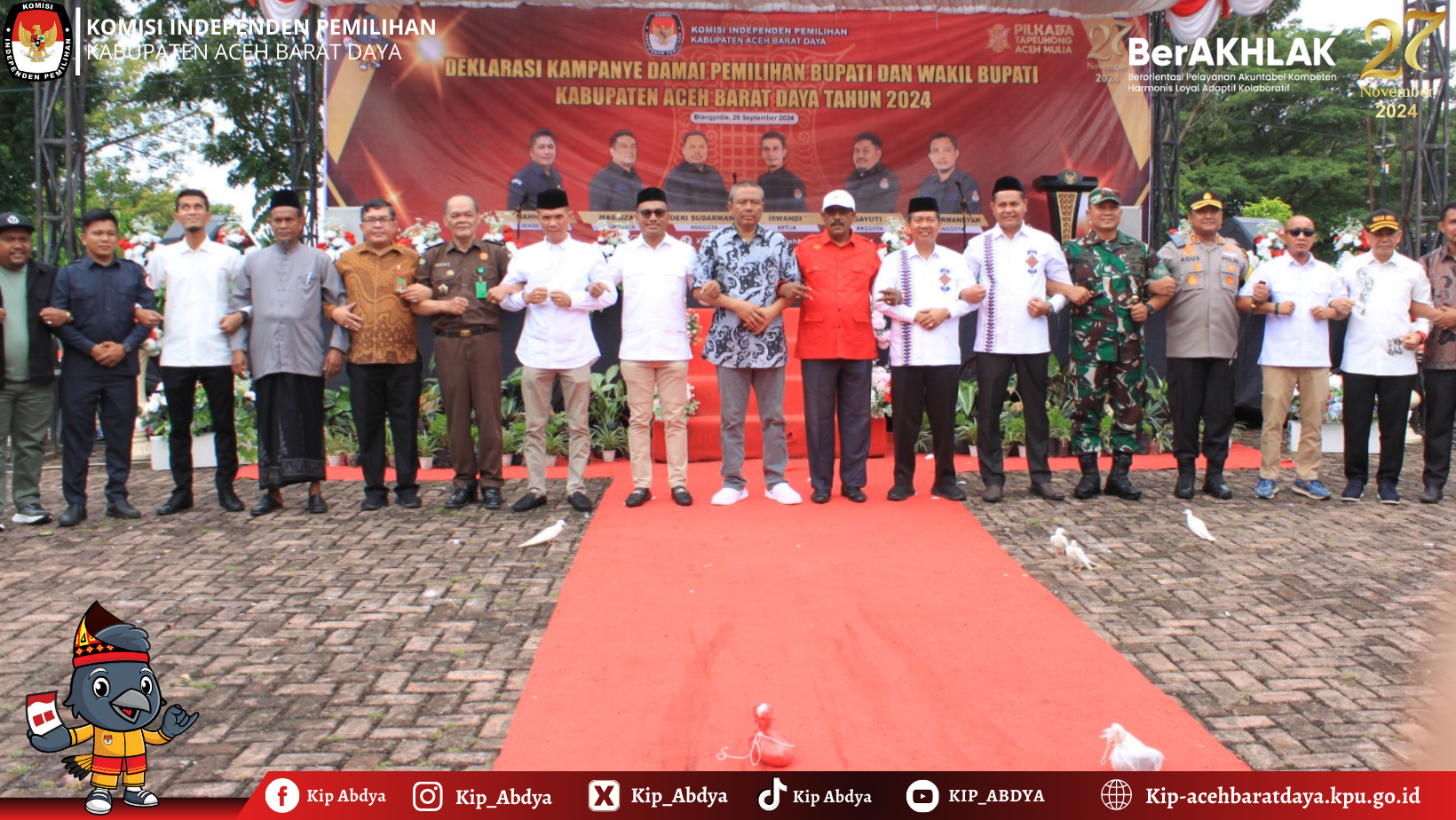Blangpidie-Kip-acehbaratdaya.kpu.go.id Komisi Independen Pemilihan Aceh Barat Daya melaksanakan Deklarasi Pemilihan Damai pada Pemilihan Bupati dan Wakil Bupati Aceh Barat Daya tahun 2024 di lapangan kantor Bupati Aceh Barat Daya. minggu, 29/9/24