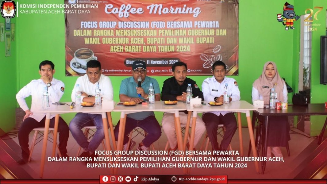 Blangpidie-Kip-acehbaratdaya.kpu.go.id. Melalui Divisi Sosialisasi dan SDM melakukan Focus Group Discussion (FGD) bersama Pewarta dalam Kabupaten Aceh Barat Daya. 11/11/24