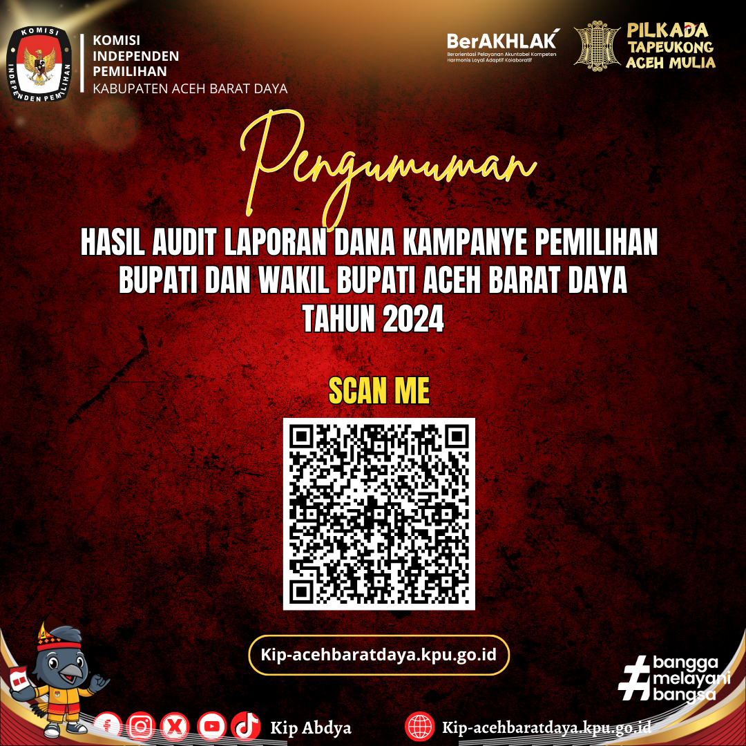 Pengumuman tentang Hasil Audit Laporan Dana Kampanye Pemilihan Bupati dan Wakil Bupati Aceh Barat Daya Tahun 2024.