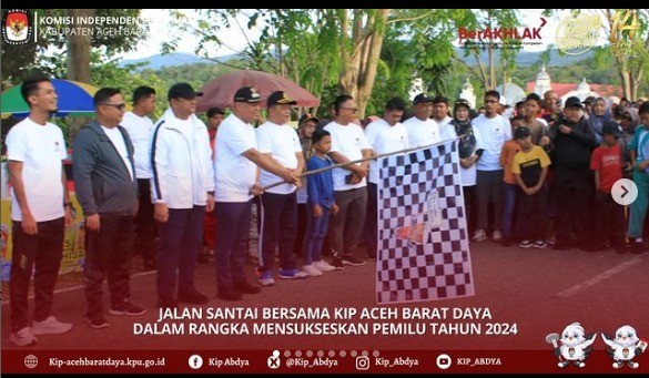 Hadir pada acara Ketua dan Anggota Komisioner KIP, sekretaris dan seluruh staf KIP Abdya, Forkopimda Abdya dan ribuan masyarakat yang ikut serta jalan santai.