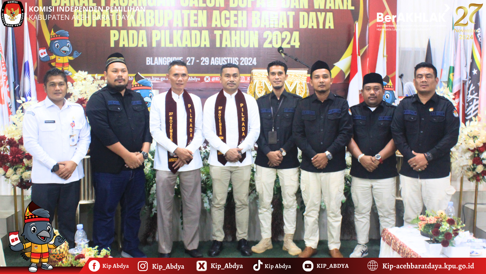 Komisi Independen Pemilihan Kabupaten Aceh Barat Daya menerima pendaftaran bakal calon Bupati Dr. Safaruddin, S.Sos., M.S.P dan Bakal calon Wakil Bupati Zaman Akli, S.Sos di Kantor KIP Setempat pada pukul 16.00 Tanggal 29 Agustus 2024.
