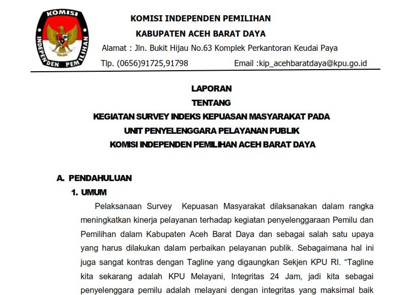 LAPORAN KEGIATAN SURVEY INDEKS KEPUASAN MASYARAKAT PADA UNIT PENYELENGGARAAN PELAYANAN PUBLIK KIP ACEH BARAT DAYA