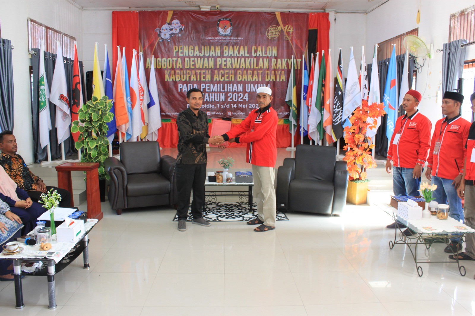 Blangpidie-Kip-acehbaratdaya.kpu.go.id. Partai Aceh (PA) mengajukan Bakal Calon Anggota DPRK Aceh Barat Daya Pemilu Tahun 2024, Sabtu (13/5/2023) di Kantor KIP. Pengajuan dilakukan oleh Ketua Partai Tgk. Abdurrahman Ubit, didampingi Sekretaris Amnasir, beserta delegasi Partai PA pada pukul 15.20 WIB.