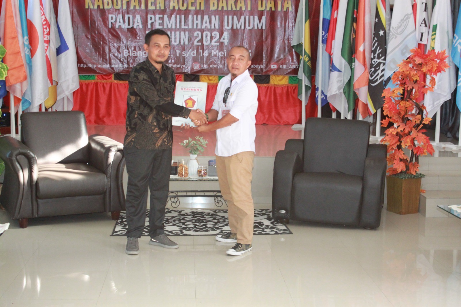 Blangpidie-Kip-acehbaratdaya.kpu.go.id. Partai Gerakan Indonesia Raya (GERINDRA) mengajukan Bakal Calon Anggota DPRK Aceh Barat Daya Pemilu Tahun 2024, Sabtu (13/5/2023) di Kantor KIP. Pengajuan dilakukan oleh Ketua Partai Roni Guswandi, didampingi Sekretaris Kasyful Wara, beserta delegasi Partai Gerindra pada pukul 15.35 WIB.