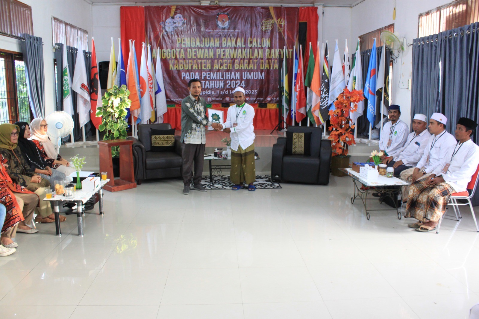 Delegasi partai diterima oleh Ketua KIP Yudi Nirmansyah, Anggota KIP Seliah, Elfiza, Martono, dan Tarmizi bersama Sekretaris KIP Abdya, Mahrizal didampingi Kasubbag Teknis Penyelenggaraan Pemilu, Indriyanto serta disaksikan oleh Panwaslih Abdya, di Ruang Aula KIP Setempat.