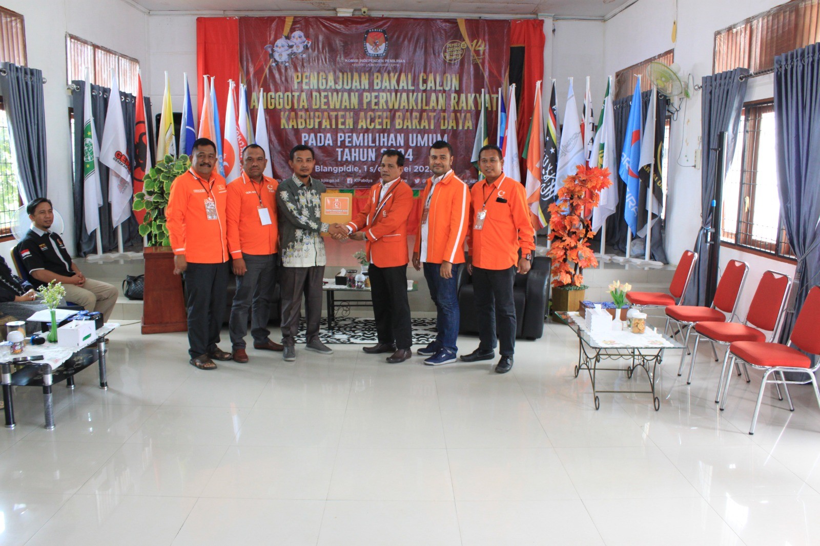 Blangpidie-Kip-acehbaratdaya.kpu.go.id. Partai Partai Nanggroe Aceh (PNA) mengajukan Bakal Calon Anggota DPRK Aceh Barat Daya Pemilu Tahun 2024, Minggu (14/5/2023) di Kantor KIP. Pengajuan dilakukan oleh Ketua Partai Syarifuddin, didampingi oleh Sekretaris Anton Sumarno, beserta delegasi Partai PNA pada pukul 11.14 WIB.