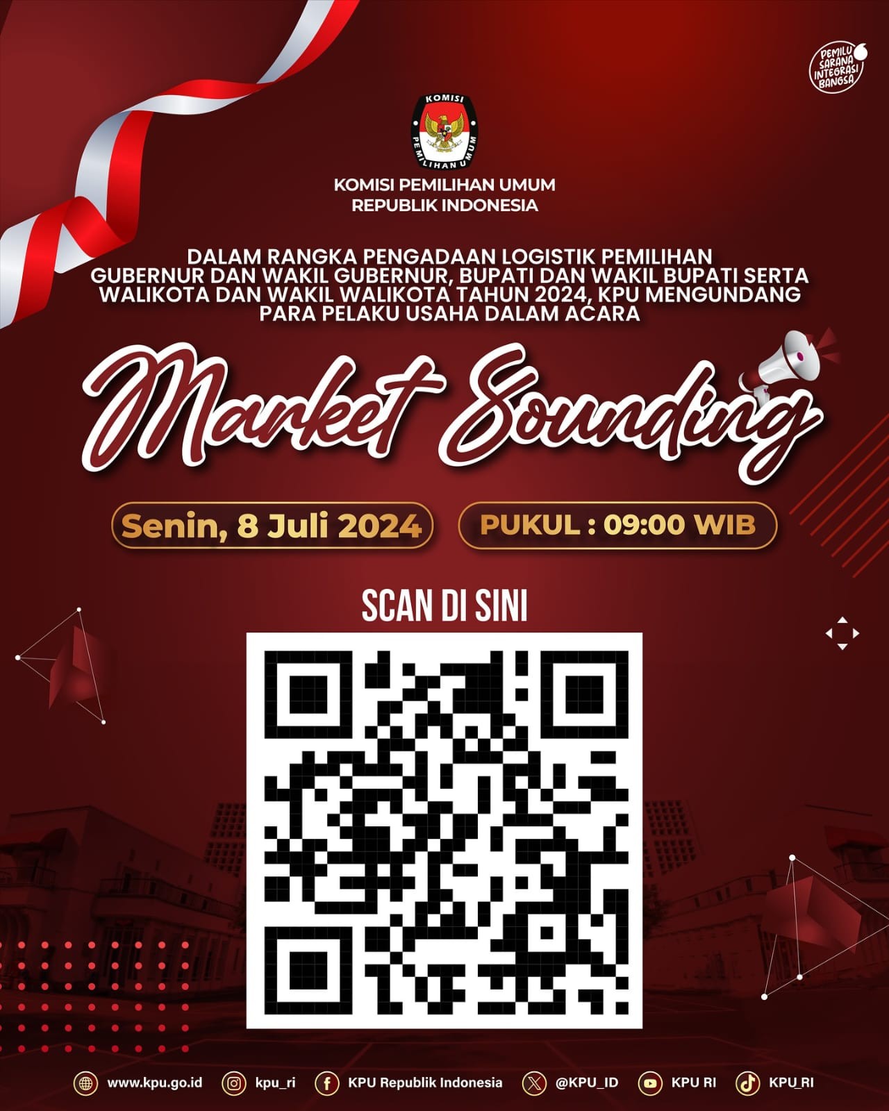 DALAM RANGKA PENGADAAN LOGISTIK PEMILIHAN GUBERNUR DAN WAKIL GUBERNUR, BUPATI DAN WAKIL BUPATI SERTA WALIKOTA DAN WAKIL WALIKOTA TAHUN 2024, KPU MENGUNDANG PARA PELAKU USAHA DALAM ACARA MARKET SOUNDING.