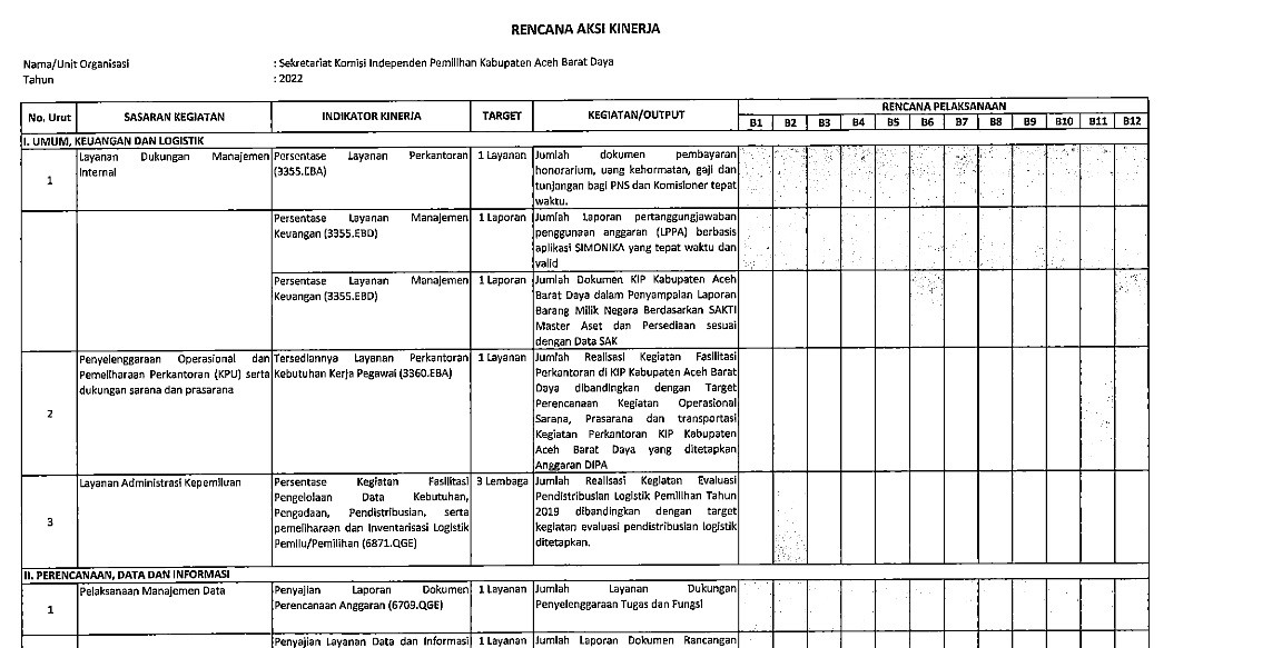 Rencana Aksi Kinerja Komisi Independen Pemilihan Kabupaten Aceh Barat Daya tahun 2022
